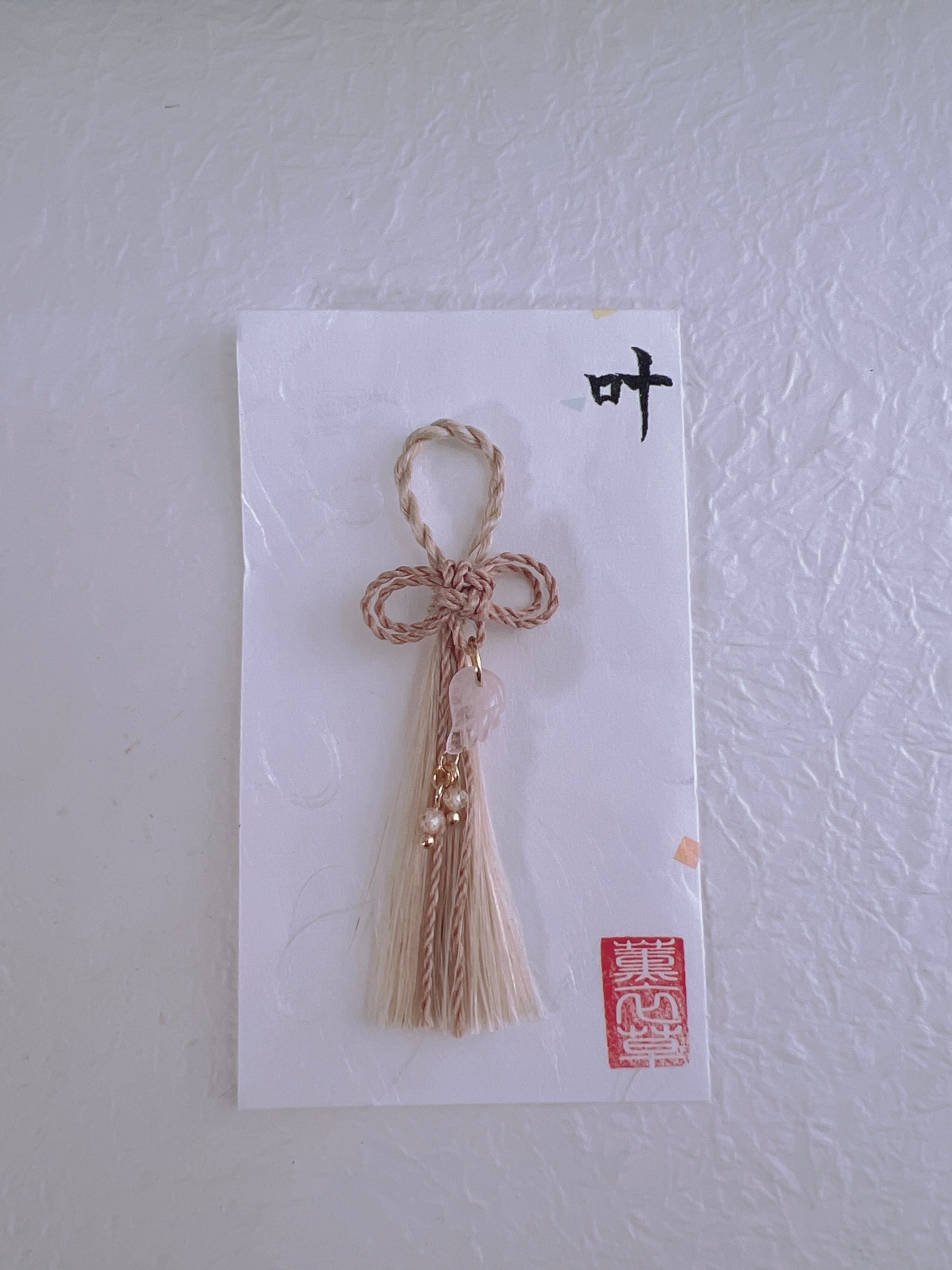お守りの名前『叶』の文字は、幸運を引き寄せるお守りとして、持つ人をお守りしてほしいという私の想いも込めこの名前を付けました。